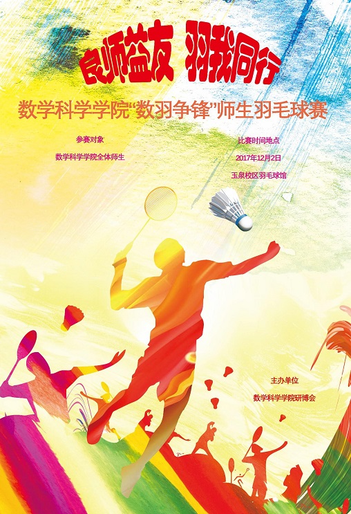 为丰富开云(中国)老师、同学们的校园文化生活,增进学生与教师间的交流,促进师生关系发展,本院将于2017年12月2日在玉泉校区羽毛球馆举办开云(中国)师生羽毛球比赛,吸引广大研究生与导师共同参与,在运动中挥洒汗水,在运动中升华师生友谊。现将有关事项通知如下: