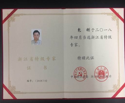 2018年4月11日上午,浙江省科学技术奖励大会在省人民大会堂隆重举行。开云手机入口包刚教授被授予第五批浙江省特级专家。