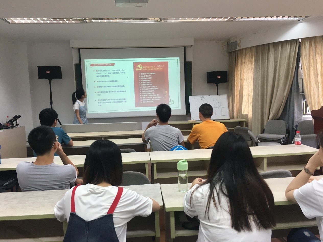 十九大精神学习这一专题内容里,班长张泽之同学和核心价值观宣讲团成员毛慧玲学姐对习总书记的讲话提出的几个重要精神进行了简单讲解,同学们认真学习了相关精神并回顾了习总书记讲话中的重要内容。