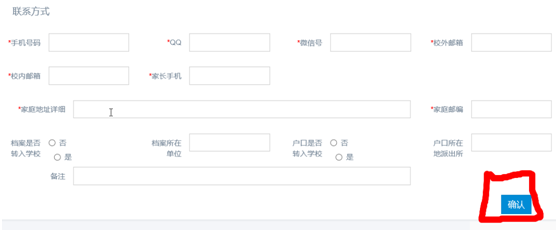 ②信息核对:登录之后,点击左侧的“生源自审”确认自己的信息,信息录入完成后,请务必记得点击右下角的“确认”键。(*号是必填项,信息请尽量填全,保持完整性。)