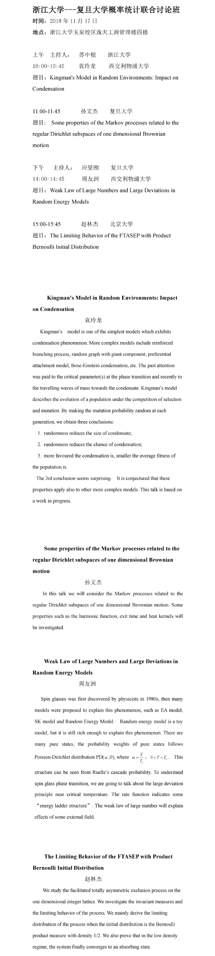 学术科研 学术团队 学术活动 学术会议 学术报告 讨论班 School Colloquium 信息公告 文件汇编 2018 开云手机入口 > 浙江大学---复旦大学概率统计联合讨论班 来源:开云(中国) 发布时间:2018-11-04 1015 联系人:赵敏智 zhaomz@zju.edu.cn