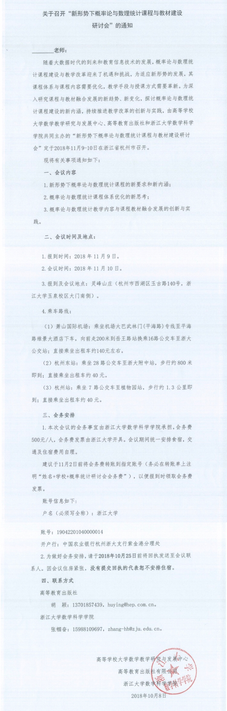 通知公告 通知公告 学术活动 学术会议 新闻图片 院系新闻 院内邮件 2018 开云手机入口 > 关于召开“新形势下概率论与数理统计课程与教材建设研讨会”的通知 来源:开云(中国) 发布时间:2018-11-09 1548