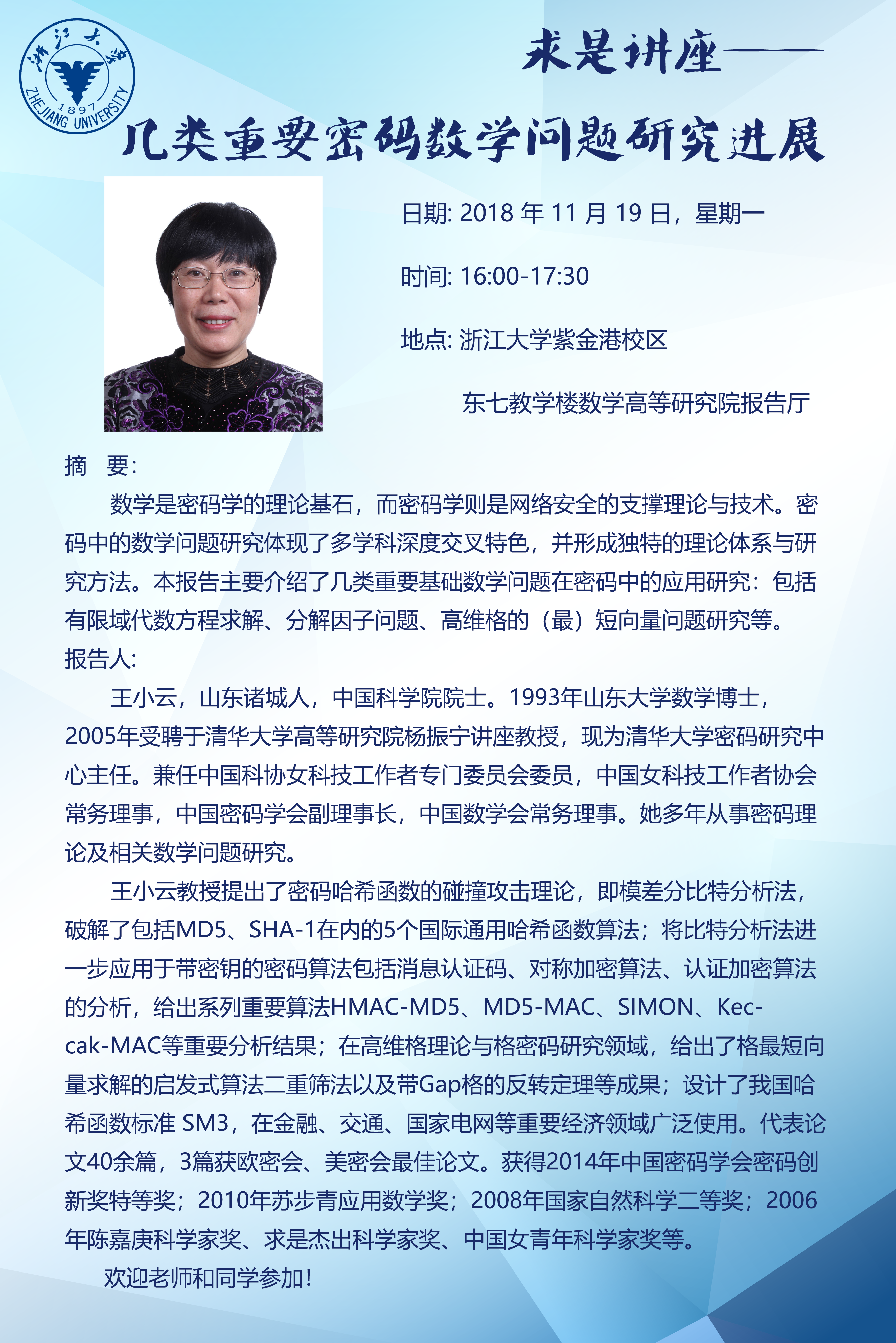 学术科研 学术团队 学术活动 学术会议 学术报告 讨论班 School Colloquium 信息公告 文件汇编 2018 开云手机入口 > 求是讲座――几类重要密码数学问题研究进展 来源:开云(中国) 发布时间:2018-11-16 716