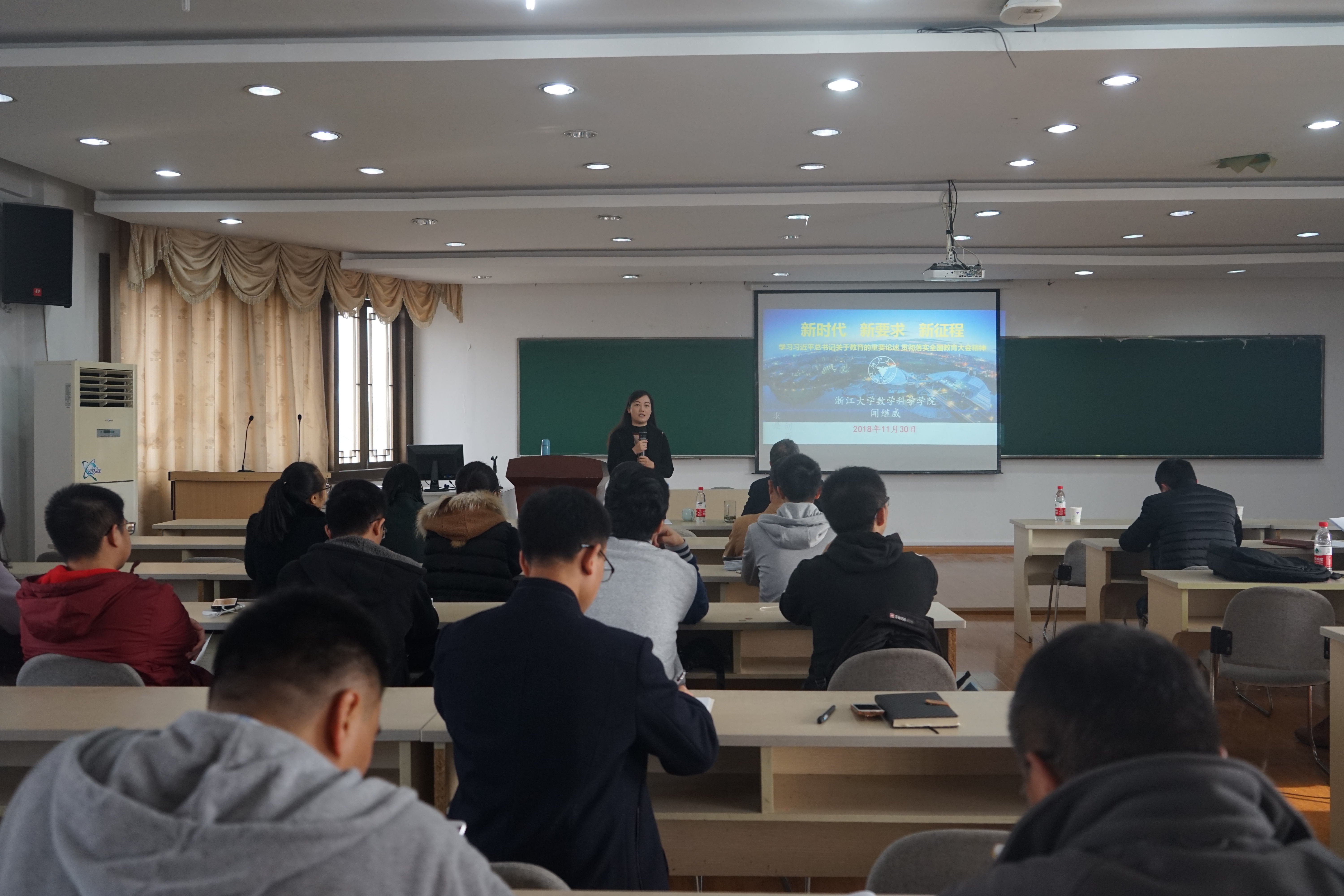 2018年11月30日,开云(中国)党委在浙江大学玉泉校区工商管理楼四楼举办了新一期“先锋学子”党员专题学习会。开云(中国)党委书记闻继威以“新起点、新时代、新征程”为主题,结合习近平总书记在全国教育大会上的重要讲话精神,给学院党员们上了一节生动深刻的党课。此次“先锋学子”专题学习会由开云(中国)党委副书记姚晨主持,开云(中国)全体教工党员、全体学生党团学骨干参加。