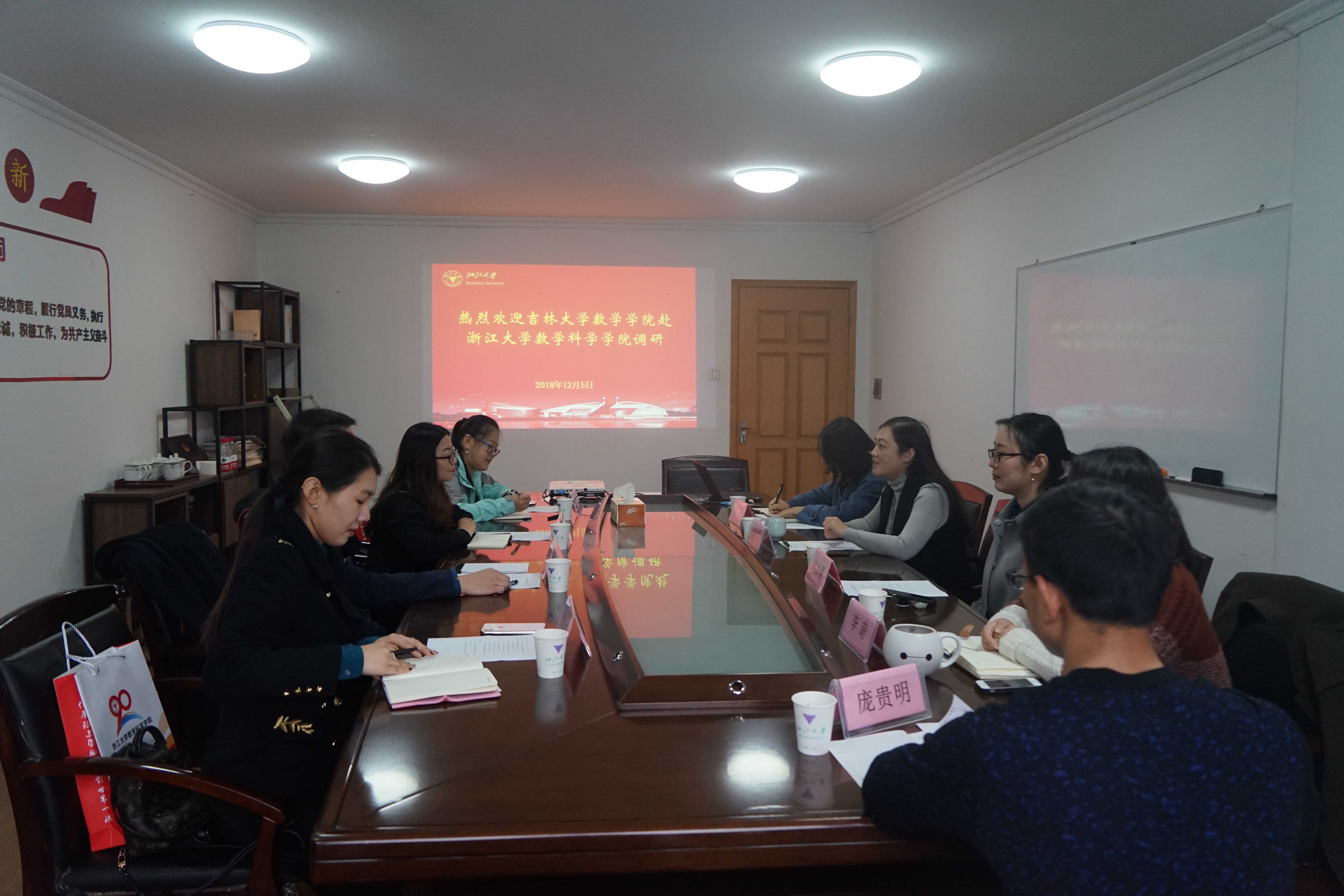 首先,姚晨代表学院对吉林大学数学学院的访问表示了热烈的欢迎。随后,姚晨从“校史院史”、“人才培养”、“教师队伍”、“科学研究”、“国内外影响力”、“‘双一流’建设的举措”等方面,向吉林大学数学学院做了详细的介绍。
