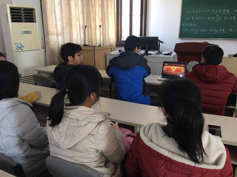 学院各党团支部在安排好正常工作、教学的同时,也认真组织各支部党员、团员在2018年12月18日当天收听收看大会现场直播。其中,2015级博士第二团支部、2016级博士第二团支部、统计研究生党支部的同学于当日上午在浙江大学玉泉校区欧阳楼咖啡吧集中观看了庆祝改革开放40周年大会;18级概率论与数理统计硕士班团支部以小组的形式准时认真收看收听了大会的直播;数学与应用数学专业和信息与计算科学专业的同学们一起集中观看庆祝改革开放40周年大会。其他支部也通过各种方式组织了对庆祝改革开放40周年大会精神的专题学习活动。