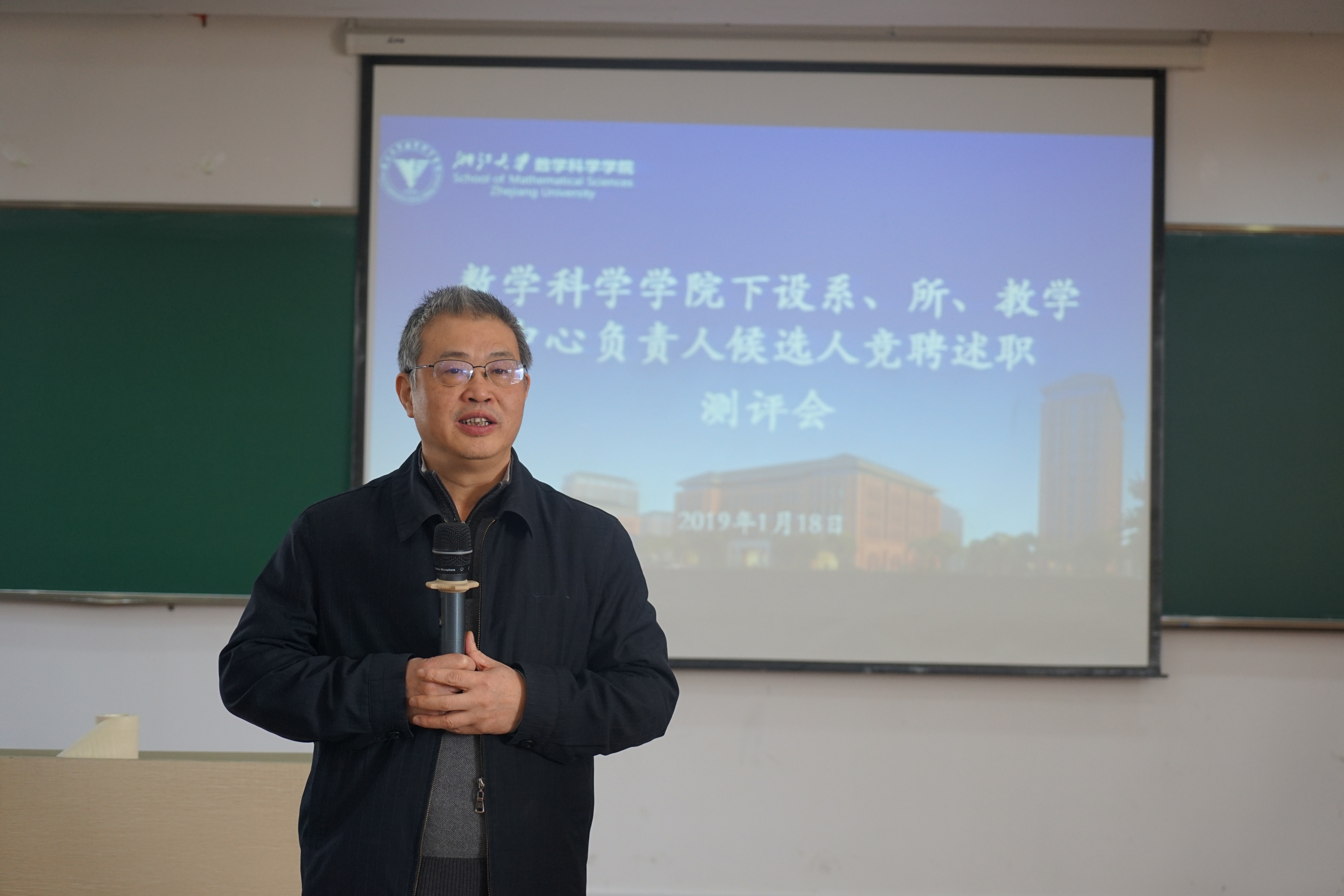 为进一步加强系、所、中心领导班子队伍建设,为学院新一轮发展奠定坚实的组织基础,切实推进学院“双一流”建设,开云(中国)于2019年1月18日下午在玉泉校区工商楼四楼报告厅召开系、所、中心负责人公开竞聘会。会议由学院党委书记闻继威主持,学院院长包刚、学院副院长盛为民、学院副院长郜传厚、学院党委副书记姚晨、及全体教职工参加此次会议。