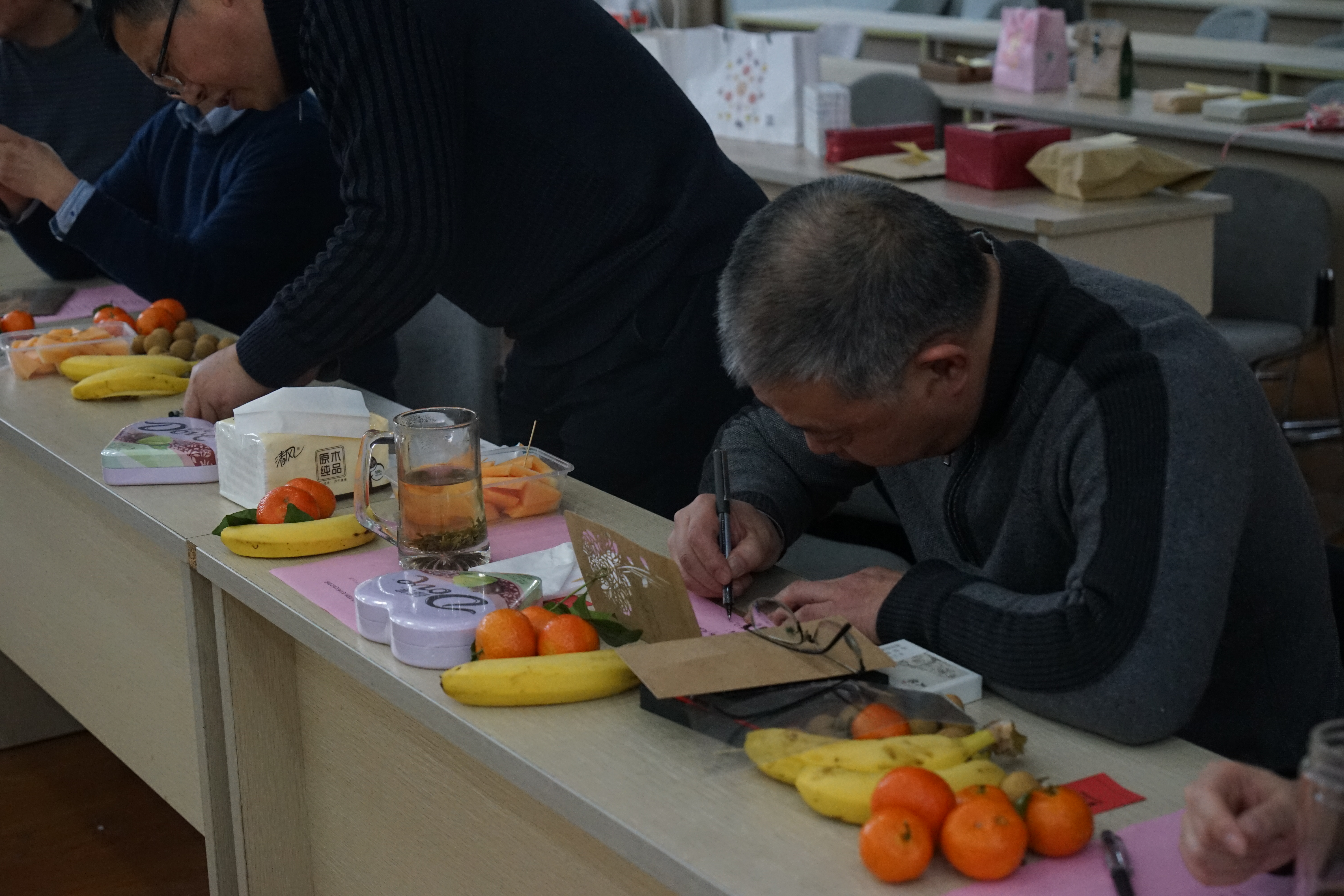 舞罢歌停,现场老师进行了新年祈福。学院为每一位老师准备了一份空白的新年贺卡,老师们略加思忖,在上面书写上新年的祝福。小小的贺卡,承载着大大的梦想。