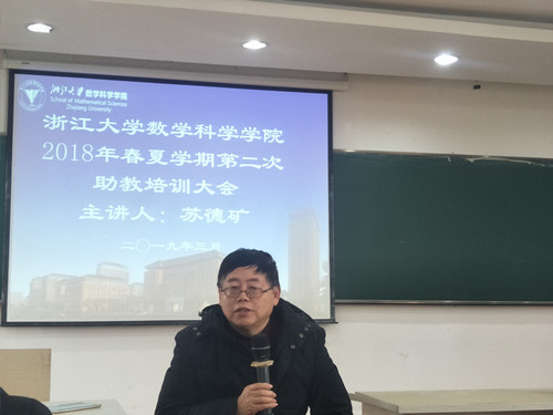 2019年3月8日下午,开云手机入口在逸夫工商楼四楼会议室召开了2018-2019学年春夏学期第二期研究生助教培训会议。本期助教培训会议主讲人为“学生最喜欢的浙江大学老师”之一、浙江大学微积分课程负责人苏德矿教授。 学院教务科熊晶蕾、付�老师以及所有2018-2019学年春夏学期研究生助教参与了本次培训会议。