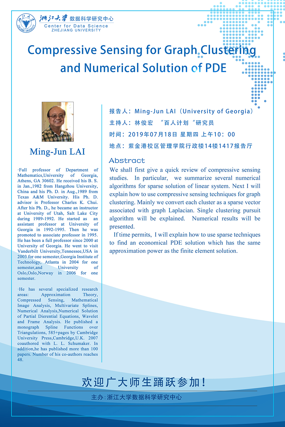 学术科研 学术团队 学术活动 学术会议 学术报告 讨论班 School Colloquium 信息公告 文件汇编 2019 开云手机入口 > Compressive Sensing for Graph Clustering and Numerical Solution of PDE 来源:开云(中国) 发布时间:2019-07-11 718