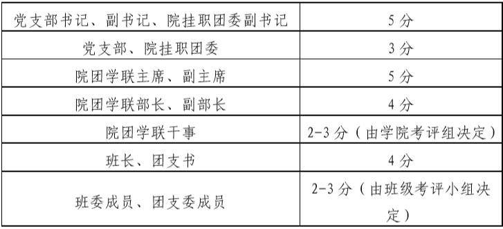 2.若个人同时从事多项学生工作,累加分值;若个人同时拥有多项荣誉,可同时申报。