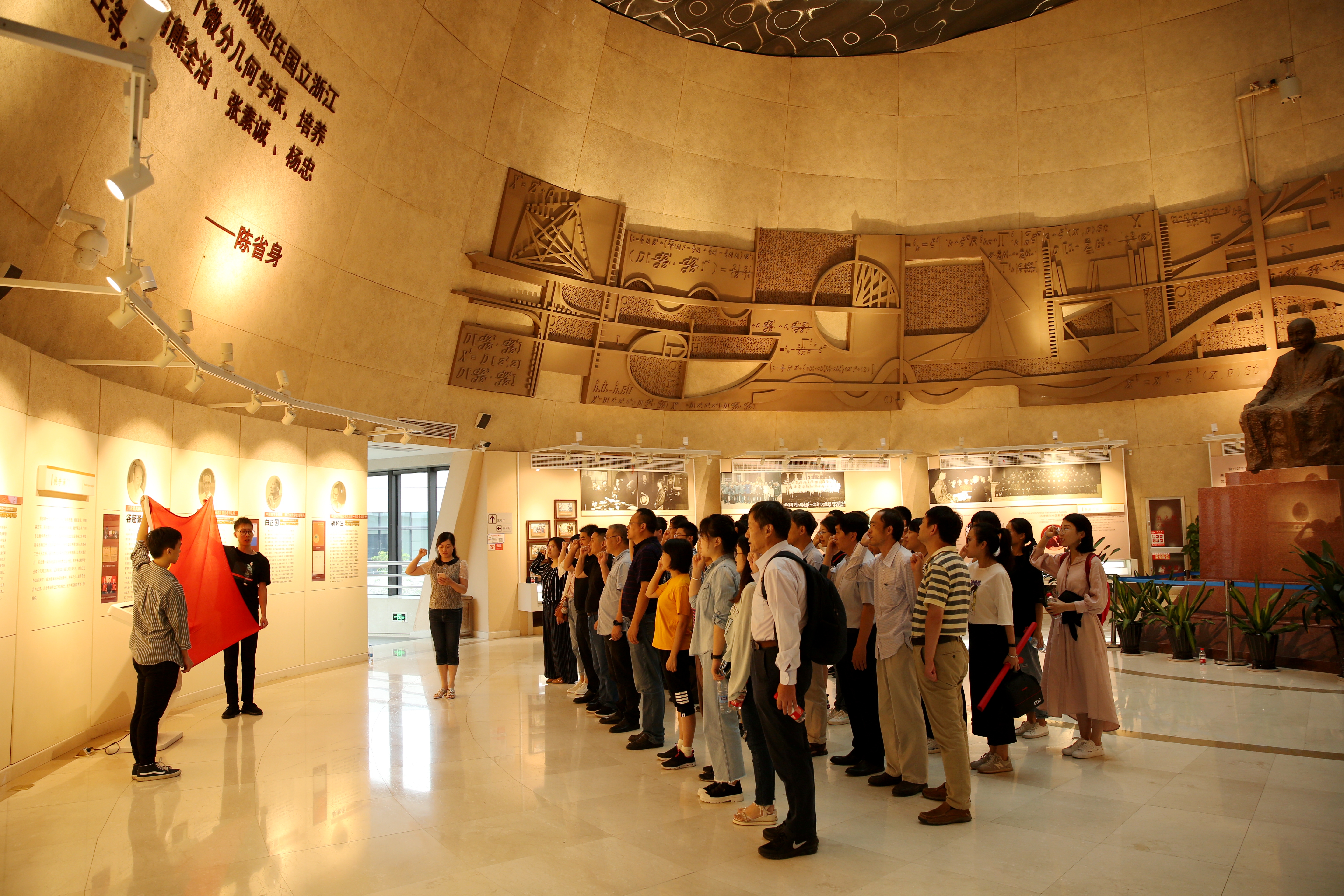 8月30日下午,党员们前往平阳县苏步青励志教育馆开展现场教学活动,由平阳县委常委、副县长刘为民,平阳县文化和广电旅游体育局副局长吴孝通、党组成员林宣永,平阳县苏步青励志教育馆馆长尤晓光等人带领下进行参观学习。党员们漫步在苏步青励志教育馆,在此重温入党誓词,通过丰富的视频、图片、文字和实物展品,学习苏老的“爱国爱乡,爱岗敬业,艰苦朴素,无私奉献”精神,体验苏老伟大的爱国主义精神、坚定的共产主义信念和朴素的数学人特质。