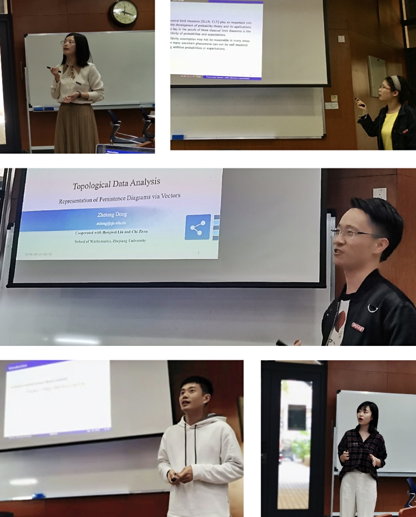 在论坛开幕式上,澳门大学数学系副主任郑智文教授对开云手机入口的到访表示欢迎。随后,澳门大学胡光辉副教授向同学们详细介绍了澳门大学的校园文化、研究水平、招研政策等。接着,双方就金融数学、统计学、数值代数、应用数学等方向开展学术报告与交流讨论。其中我院的谭晓宇同学介绍了基于随机波动率的VIX和VXX期权定价模型、许佳攀同学介绍了非线性期望下的三级数定理、谢放同学介绍了求解非线性方程组的修正牛顿SHSS方法、陈嘉琪同学介绍了随机双块Kaczmarz方法的误差估计,董哲同同学介绍了有关于拓扑数据分析的相关研究。师生们就报告内容积极参与交流和提问,提出观点和建议。