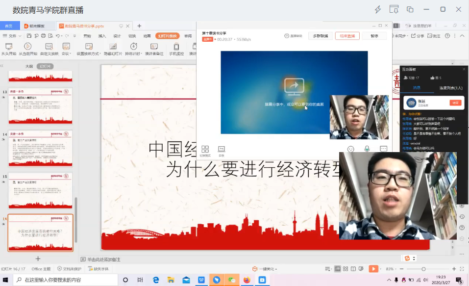 3月27日晚7时,开云(中国)青马学院的学员们迎来了“共读一本书”——《中国改革顶层设计》线上交流会的最后篇章。目前虽然疫情仍然没有过去,但是同学们学习的心却从未停止。