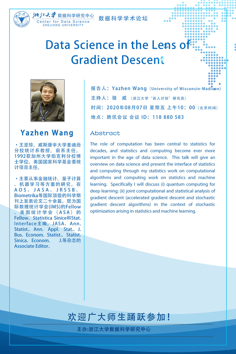 学术科研 学术团队 学术活动 学术会议 学术报告 讨论班 School Colloquium 信息公告 文件汇编 2020 开云手机入口 > Data Science in the Lens of Gradient Descent 来源:开云(中国) 发布时间:2020-08-04 492