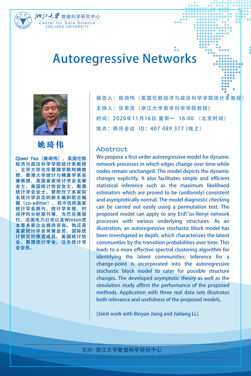 学术科研 学术团队 学术活动 学术会议 学术报告 讨论班 School Colloquium 信息公告 文件汇编 2020 开云手机入口 > Autoregressive Networks 来源:开云(中国) 发布时间:2020-10-22 489