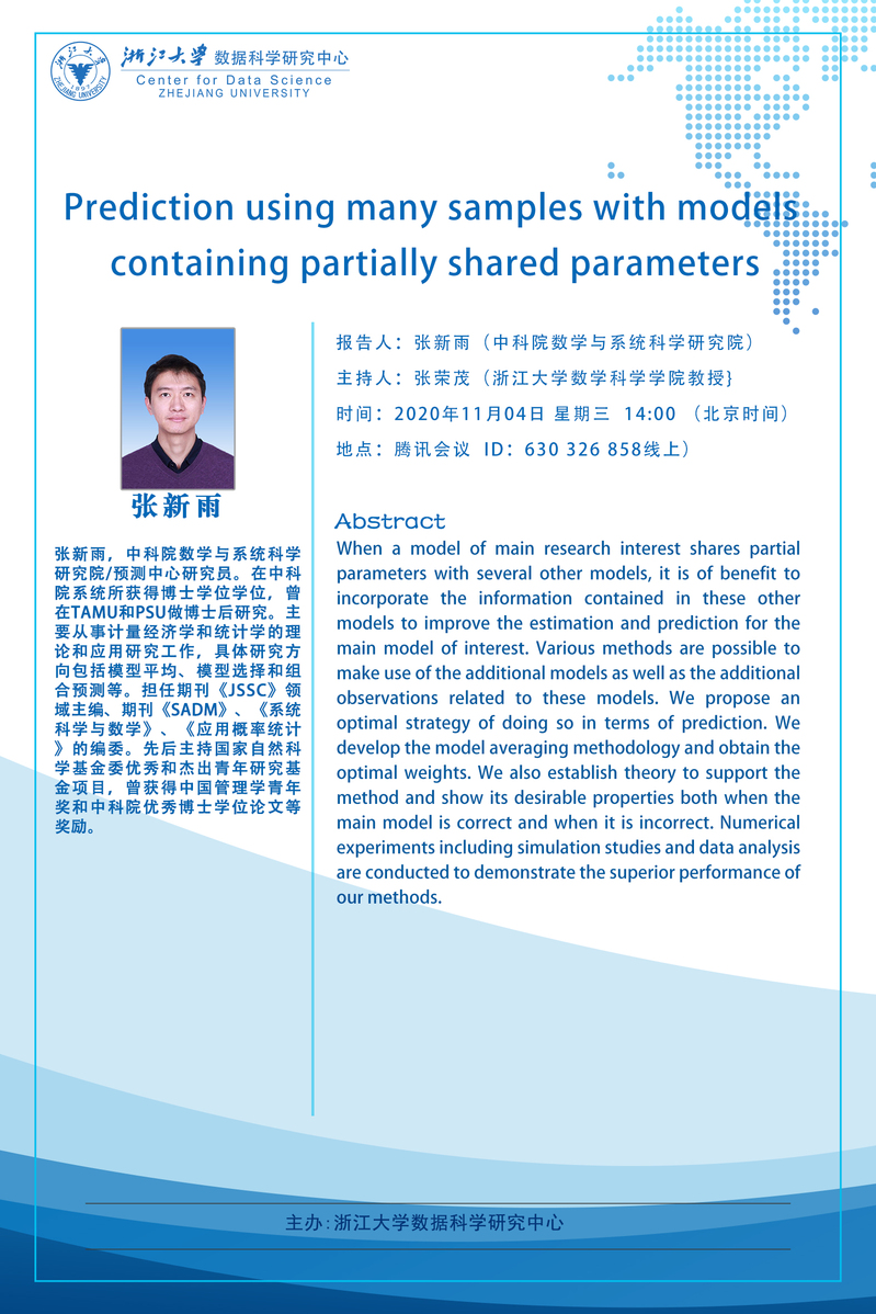 学术科研 学术团队 学术活动 学术会议 学术报告 讨论班 School Colloquium 信息公告 文件汇编 2020 开云手机入口 > Prediction using many samples with models containing partially shared parameters 来源:开云(中国) 发布时间:2020-10-22 493