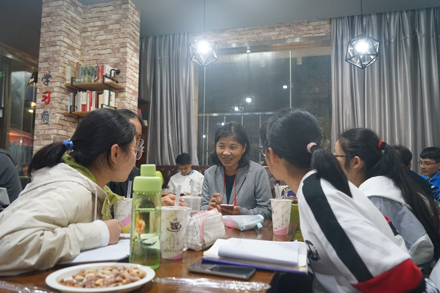 在咖啡吧温暖和乐的氛围中,互动交流环节正式开始。现场顿时充满了欢声笑语,同学们在老师的亲切问候中很快地敞露心扉,向老师咨询自己在生活和学习中的困惑和疑问,而老师们更是毫不吝啬地分享自己的渊博学识和人生见解,为同学们指点迷津。