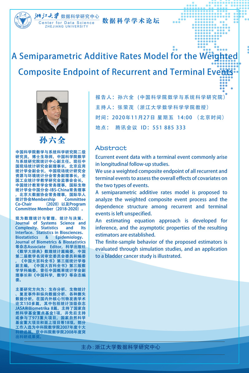 学术科研 学术团队 学术活动 学术会议 学术报告 讨论班 School Colloquium 信息公告 文件汇编 2020 开云手机入口 > A Semiparametric Additive Rates Model for the Weighted Composite Endpoint of Recurrent and Terminal Events 来源:开云(中国) 发布时间:2020-11-26 342