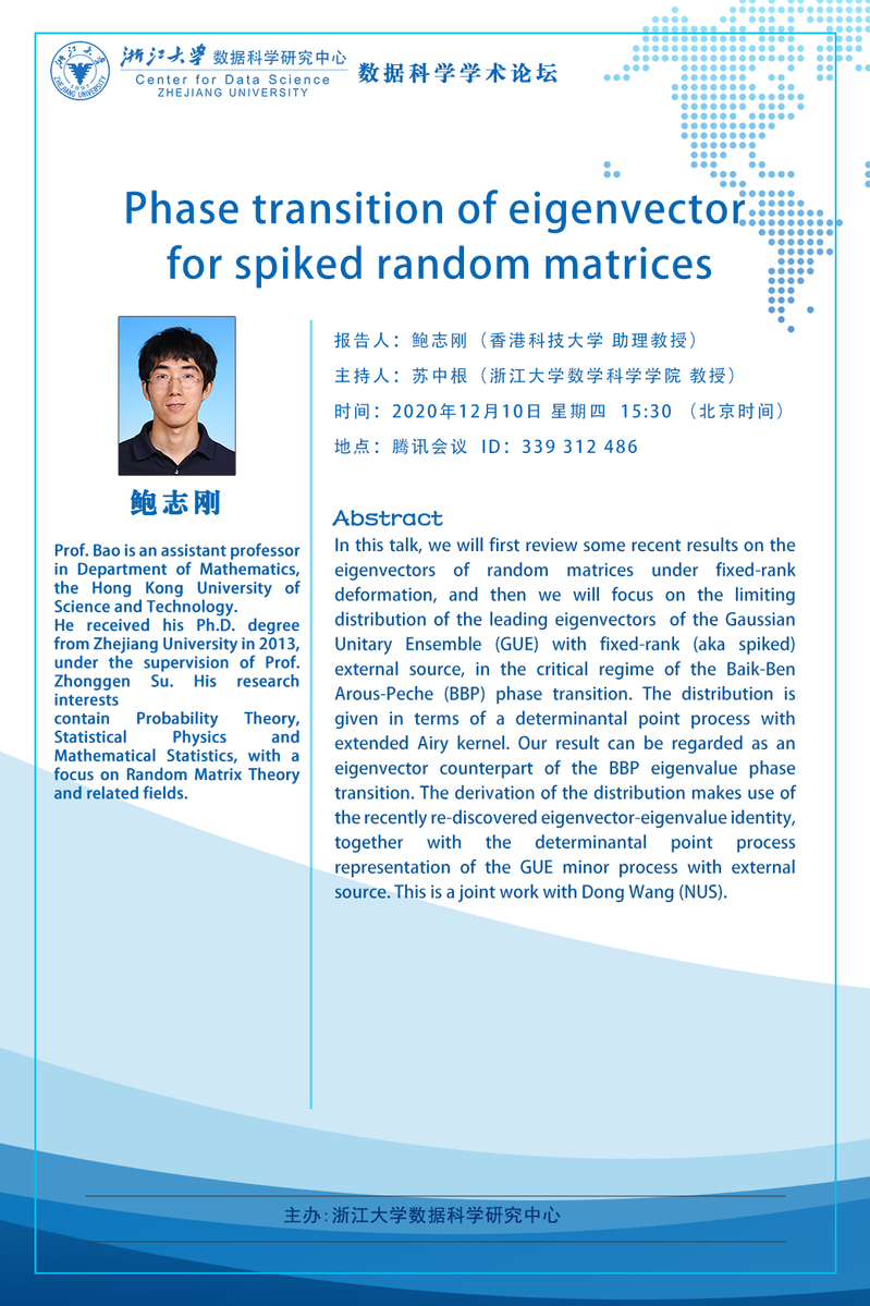 学术科研 学术团队 学术活动 学术会议 学术报告 讨论班 School Colloquium 信息公告 文件汇编 2020 开云手机入口 > Phase transition of eigenvector for spiked random matrices 来源:开云(中国) 发布时间:2020-12-02 592