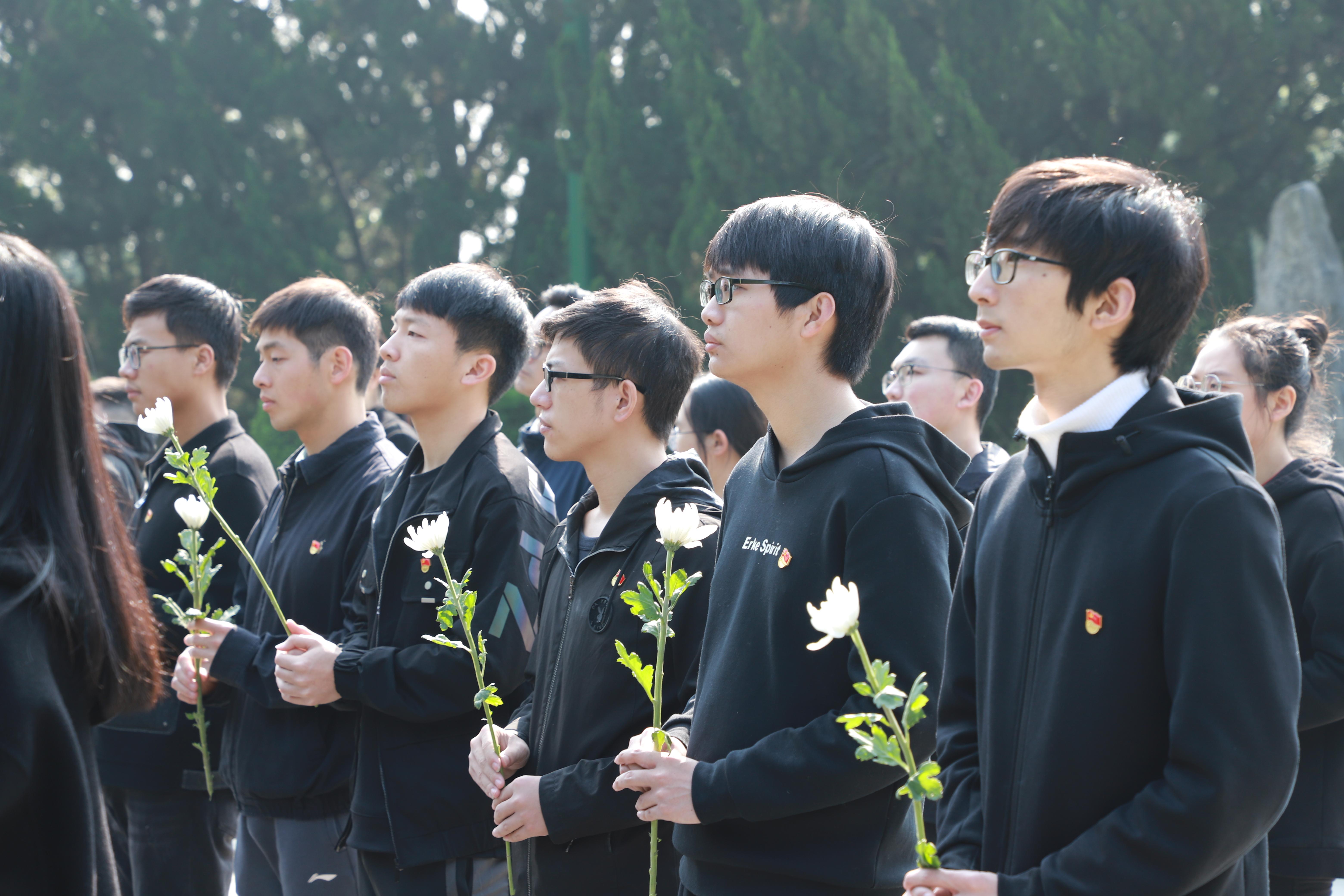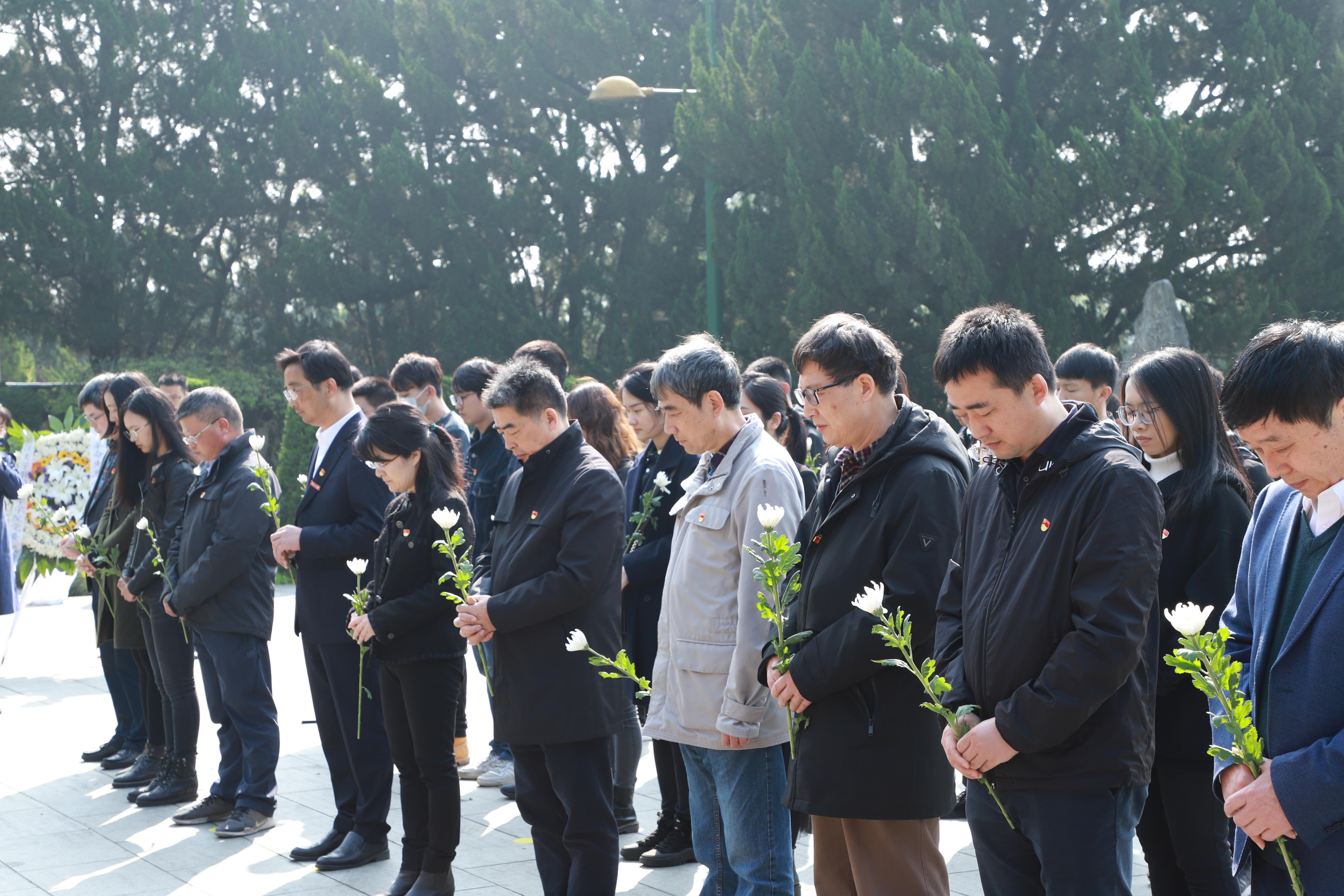 山埋忠骨,史册树功勋。在革命烈士纪念碑前,全体师生低头默哀、告慰英烈。默哀毕,学生代表向革命先烈敬献花圈,全体师生依次在烈士墓前深深鞠躬,敬献菊花以示敬意与哀思。