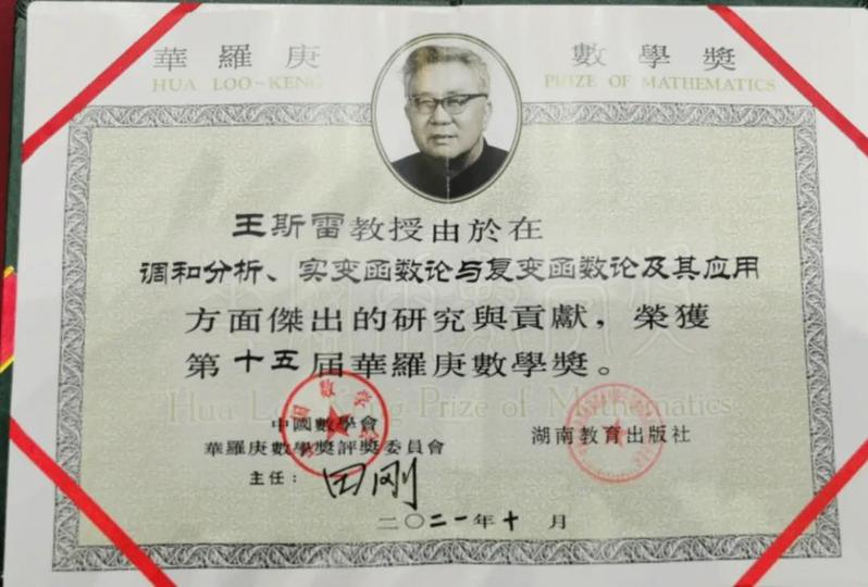 热烈祝贺我院王斯雷教授荣获华罗庚数学奖!