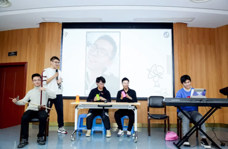 强基2001班的同学们通过表演考试周前后的情景,劝诫同学们要重视学习,也充分展现了他们昂扬向上的精神风貌,并以一首自弹自唱的《稻香》作结。