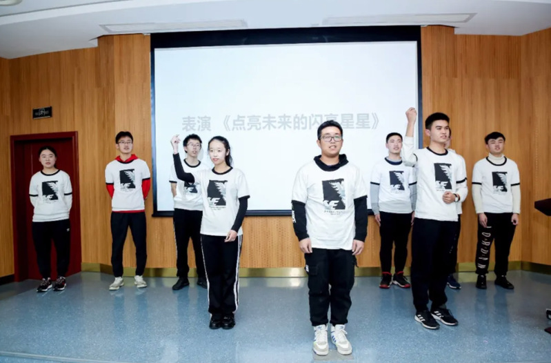 求数2001班的同学表演《点亮未来的闪亮星星》与手势舞《夜空中最亮的星》,阐明了教育如同夜空中的明星般,指引着一代代人前进与发展。