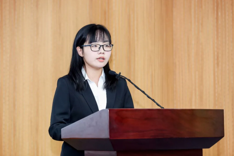 汤宇婷同学作为新一期青马工程学员代表发言。她表示加入青马工程既是对过往工作的肯定,更是对未来思想学习的激励,她会继续发扬艰苦奋斗的精神,在行动上向榜样看齐,在思想上向组织靠拢。