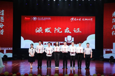 晚会现场举行了教师颁奖及院友证颁发仪式。在毕业班同学的积极推荐与评选下,6位毕业班班主任获评“杏坛流芳奖”,王何宇老师获评“最佳人气奖”,张庆海老师获评 “博古通今奖”,江文帅老师获评“深稽博考”奖,学院院长励建书院士与党委副书记陈庆老师为老师们进行颁奖,学生代表们为各位老师送上鲜花。为纪念毕业班同学顺利完成本科学业,学院党委副书记孙凯老师与副院长张挺老师为各毕业班学生代表颁发了院友证,祝福他们前程似锦、心系学院。