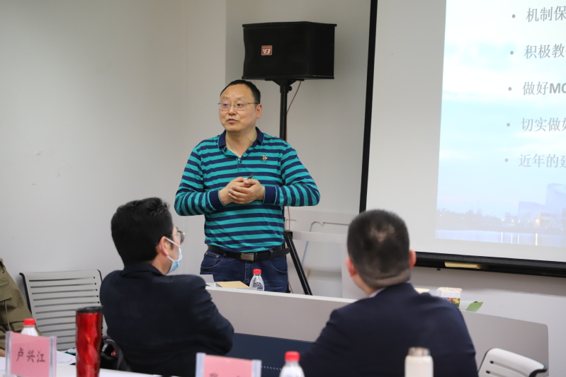 微积分基层教学组织负责人卢兴江教授作了“以学生发展为出发点,做好微积分课程建设”的专题报告,他分享了微积分基层教学组织在实施“过程性考核”方面的经验,在创新答疑辅导上,正寻求适合学生实际且有效的课后辅导制度。他希望学院能积极培养年轻教师,吸引中青年教师担任教学工作,提高教学水平,增强基层教学组织凝聚力。