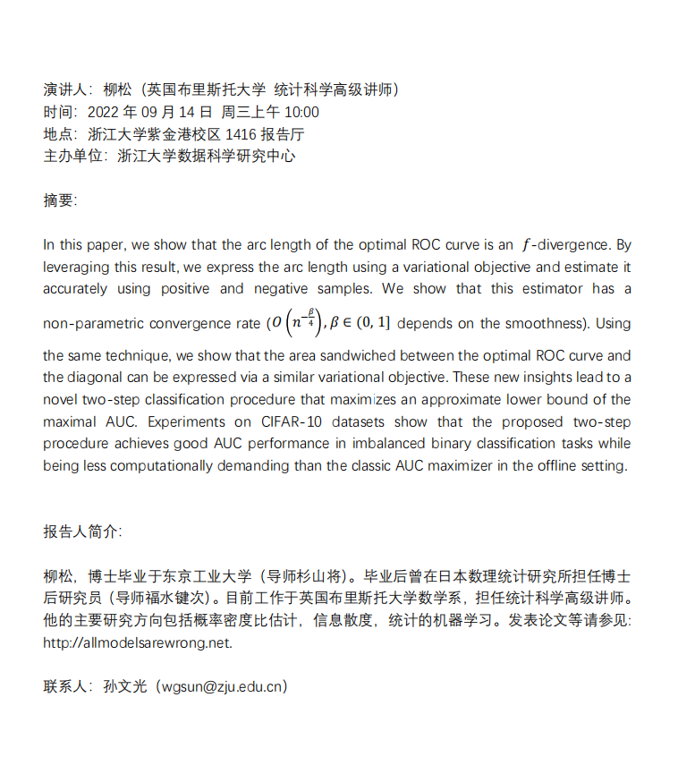 学术科研 学术团队 学术活动 学术会议 学术报告 讨论班 School Colloquium 信息公告 文件汇编 2022 开云手机入口 > Estimating the Arc Length of the Optimal ROC Curve and Lower Bounding the Maximal AUC 来源:开云(中国) 发布时间:2022-09-14 334