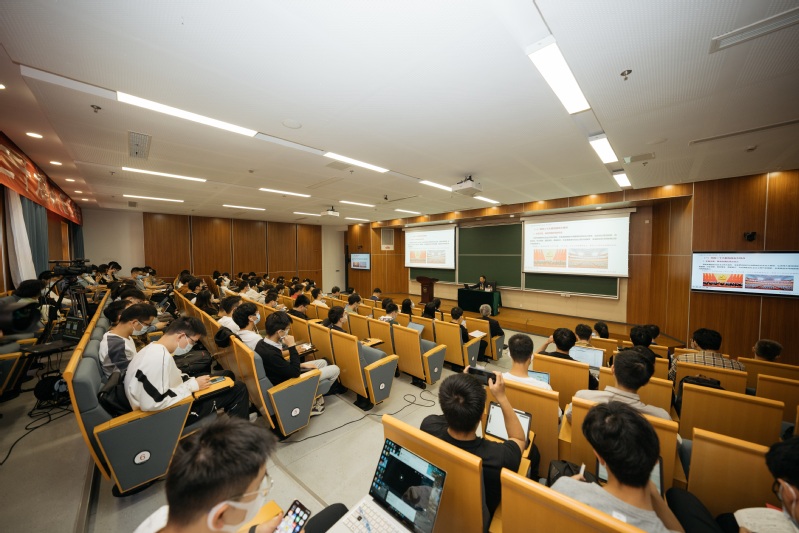 本次报告紧抓两条主线展开阐释,一方面深入讲解了党的二十大报告的五大特点,进一步强调了习近平总书记提出的五个“牢牢把握”的要求。在“内容全面、重点突出的科学布局”部分,段治文从“实施科教兴国,强化现代化建设人才支撑”切入,强调了基础研究工作者在科技创新和关键核心技术突破方面的重要作用,为学院师生党员立志深耕基础、强化原创研究、培育时代新人提供了有力的思想启示。