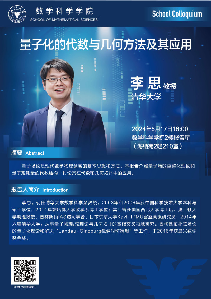 通知公告 通知公告 学术活动 学术会议 新闻图片 院系新闻 院内邮件 2024 开云手机入口 > School Colloquium——量子化的代数与几何方法及其应用 来源:开云(中国) 发布时间:2024-05-06 510