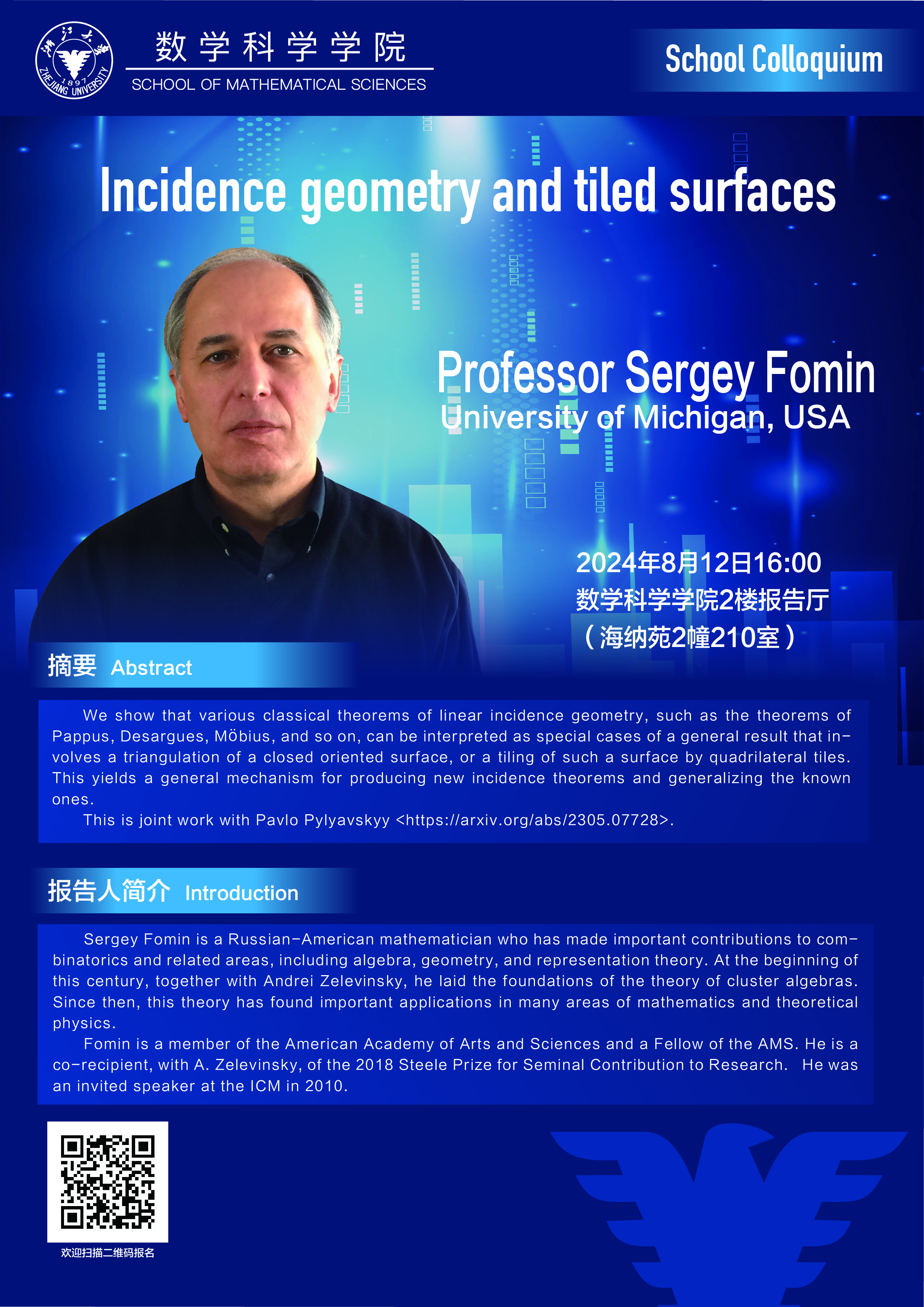 通知公告 通知公告 学术活动 学术会议 新闻图片 院系新闻 院内邮件 2024 开云手机入口 > School Colloquium——Incidence geometry and tiled surfaces 来源:开云(中国) 发布时间:2024-07-29 404