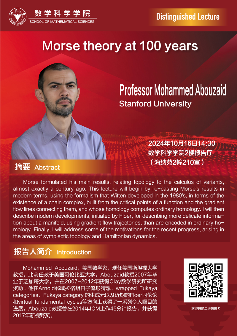 学术科研 学术团队 学术活动 学术会议 学术报告 讨论班 School Colloquium 信息公告 文件汇编 School Colloquium 开云手机入口 > Morse theory at 100 years 来源:开云(中国) 发布时间:2024-10-11 68