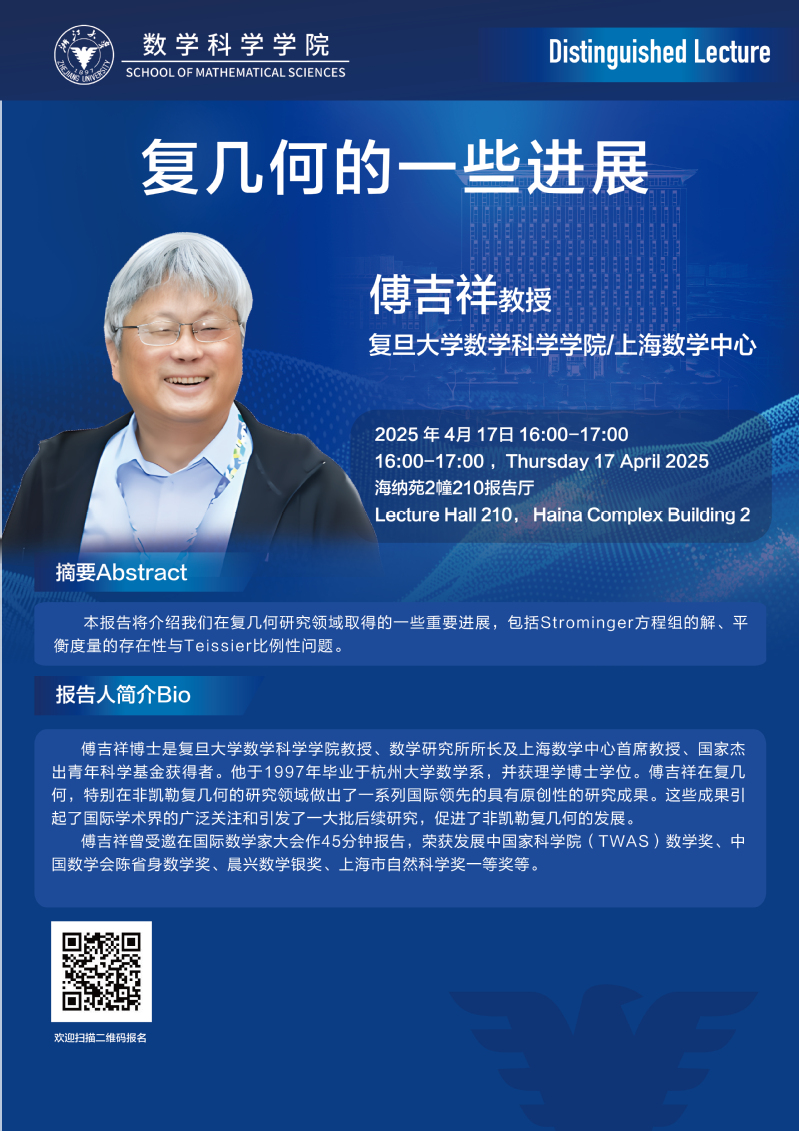 学术科研 学术团队 学术活动 学术会议 学术报告 讨论班 School Colloquium 信息公告 文件汇编 学术活动 开云手机入口 > Distinguished Lecture——复几何的一些进展 来源:开云(中国) 发布时间:2025-04-11 246