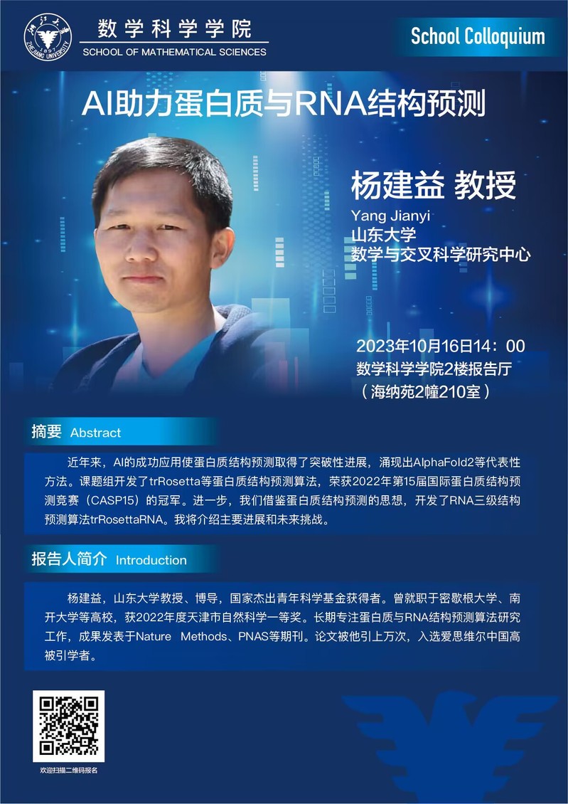 Seminars Seminars School Colloquium Conferences Position : homepage EVENTS Seminars School Colloquium—AI助力蛋白质与RNA结构预测 2023-10-16 14:00:48 2023-10-16 14:00:48 2023-10-16 14:00:48 Speaker : Yang Jianyi, Shandong University Time : 2023-10-16 14:00:48 Location : 210 Haina Complex Building 2 Date: 2023-10-11 Visitcount : 94