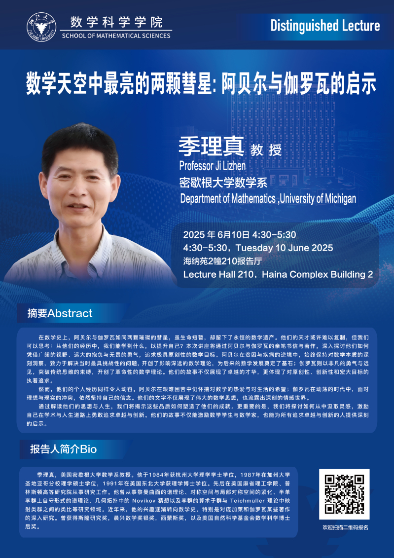 Distinguished Lecture——数学天空中最亮的两颗彗星: 阿⻉尔与伽罗⽡的启示