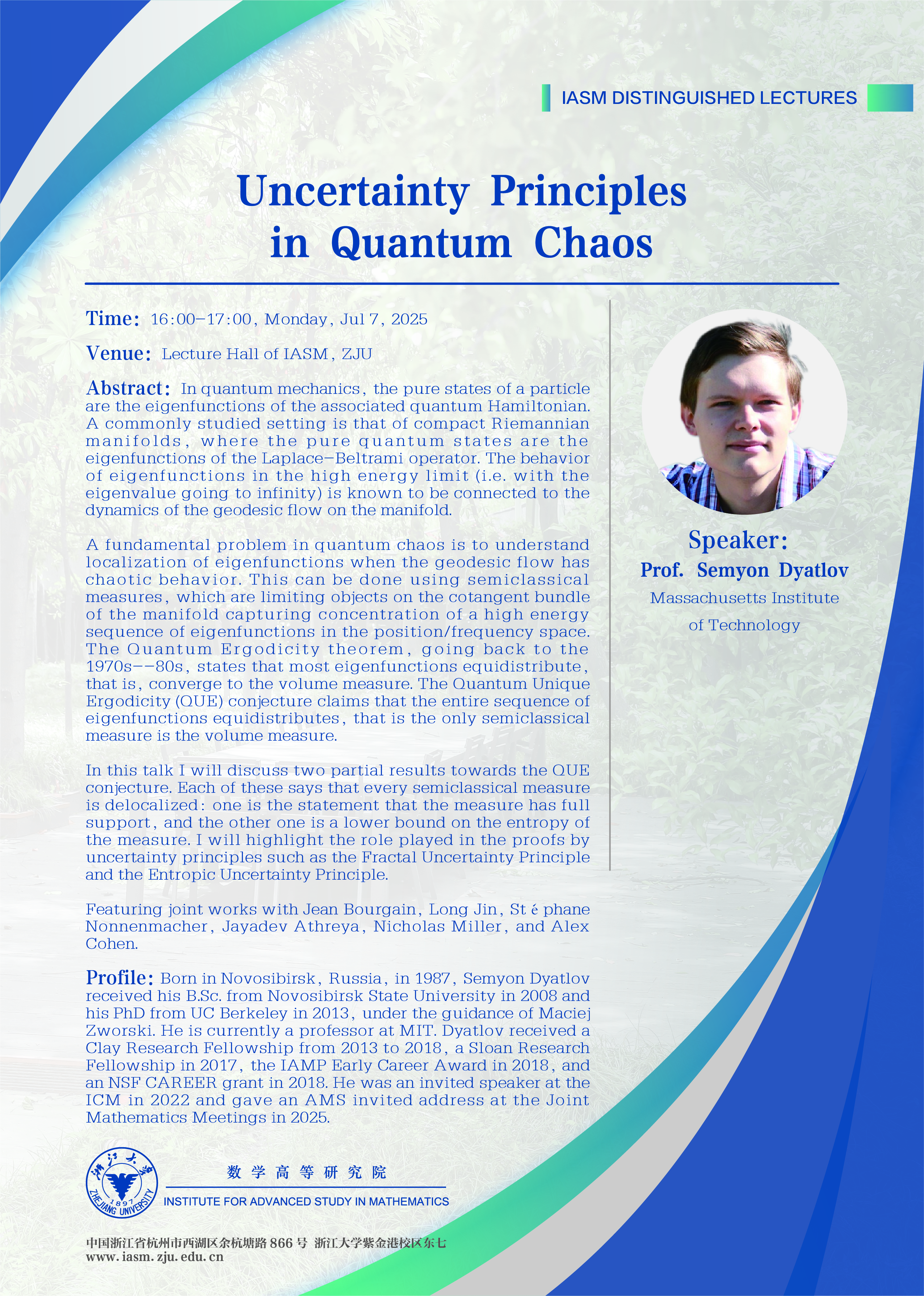 IASM Distinguished Lectures——Uncertainty Principles in Quantum Chaos